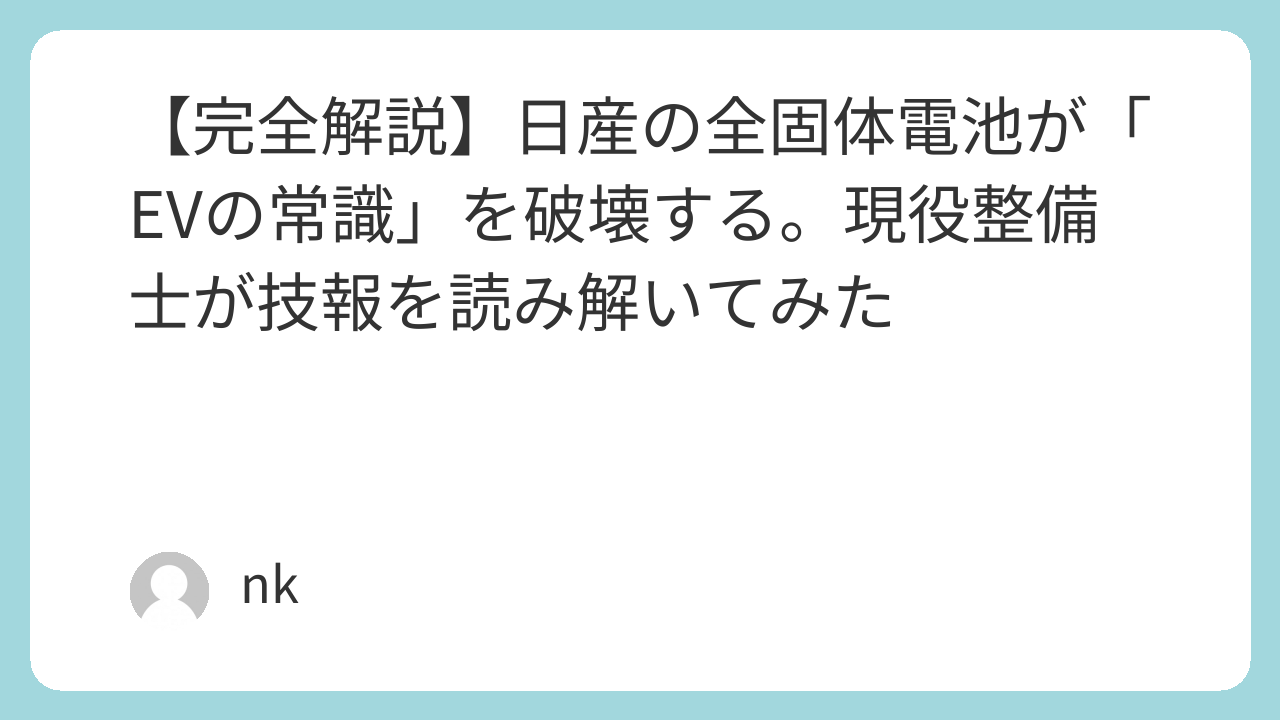 今回は、日産の技術者たちが心血を注いでいる「全固体電池」の正体について、現場の人間だからこそわかる「ここがヤバい!」というポイントを徹底解説します。5000文字の特大ボリュームですが、これからの10年、クルマがどう変わるかを知りたい方はぜひ最後までお付き合いください。