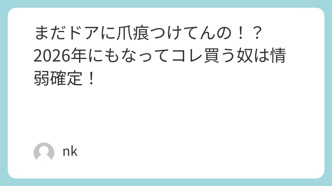 まだドアに爪痕つけてんの!?2026年にもなってコレ買う奴は情弱確定!